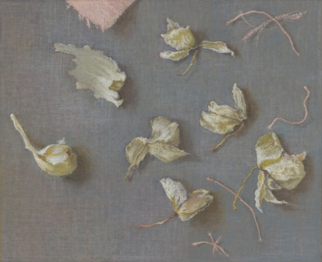 Dried Flowers, Garlic Skins, Fabric, and Threads, 6¾ x 8¼”