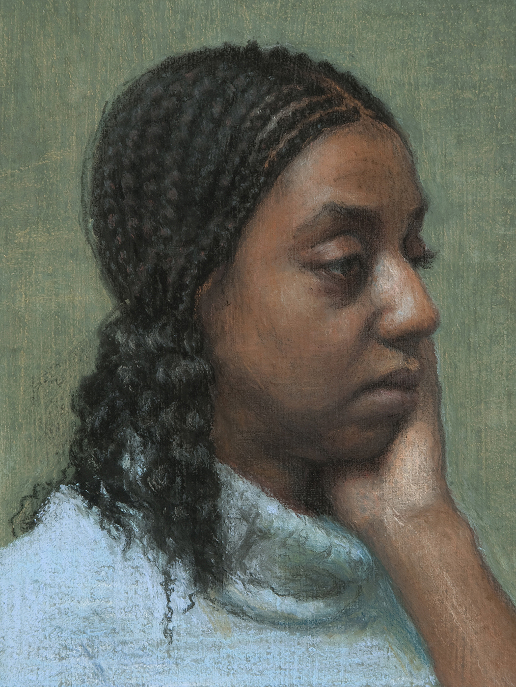 Young Woman With Braided Hair, 6 1/8 x 4 5/8″